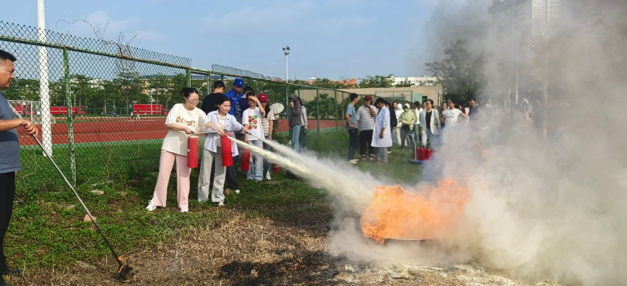 副院长刘艳凤作培训动员讲话,向参训师生提出了“高度重视、全程参与”“潜心学习、入脑入心”的要求。培训会上,保卫处安全管理科王智老师分别就如何树立消防责任意识、清除消防安全隐患、初期火灾扑救、火情紧急情况处置、火灾应急疏散常识等方面进行了培训,并现场讲解了灭火器、灭火毯等消防器材的使用方法,同时强调了火灾发生时“时间”的重要性。实地演练阶段,学生和老师们轮流使用干粉灭火器进行灭火演练。