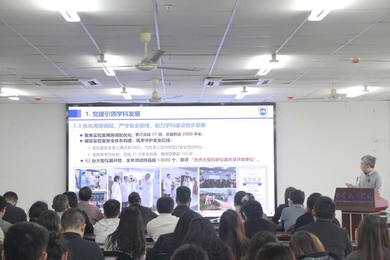领导班子作年度工作报告。报告从思想政治建设、学科专业发展、人才培养质量、师资队伍建设、科研创新能力、管理服务水平以及党风廉政建设等方面,全面总结了 搜同