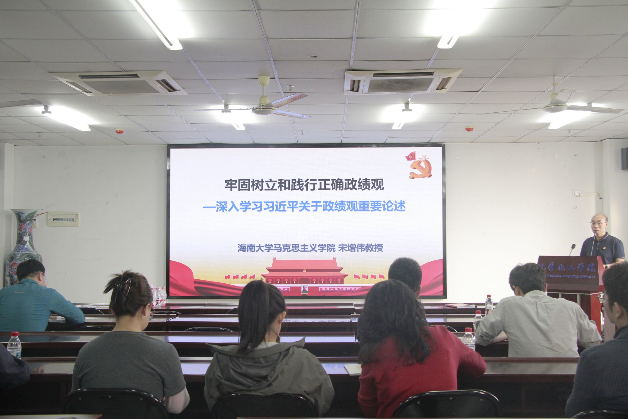 宋增伟教授作题为《牢固树立和践行正确政绩观—深入学习习近平总书记关于政绩观的重要论述》的专题辅导报告,宋教授从学习要求、重要意义、丰富内涵、工作机制和爱岗敬业五个方面对树立和践行正确政绩观作了系统深入的解读,为与会人员带来一场既有理论深度又有实践温度的专题党课。