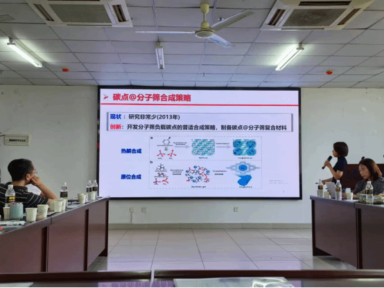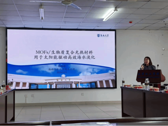 杨玮婷研究员作了“MOFs/生物质复合光热材料用于太阳能驱动高效海水淡化”的报告,各位专家提出了宝贵的意见。