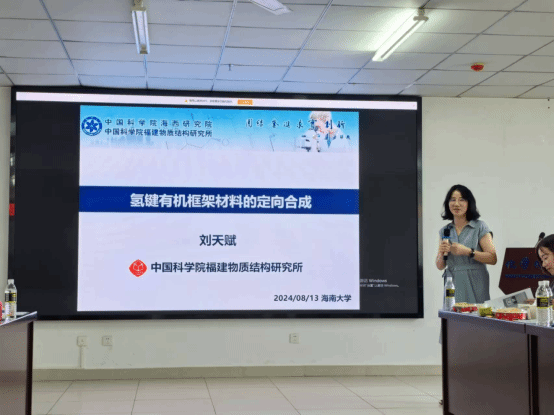 福建物质结构研究所刘天赋教授作了“氢键有机框架(HOF)材料的定向合成”的报告。她系统性地总结了稳定HOF的合成策略、HOF可控合成机制以及氢键赋予的结构及功能性,并同与会者进行了深入的交流。