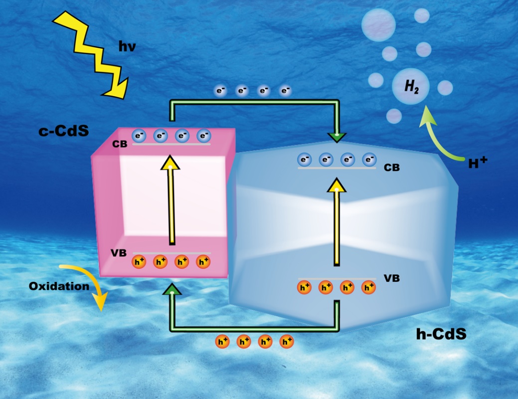 氢能源作为一种高能量密度、零污染的清洁能源,可有效解决传统化石能源的消耗所产生的能源危机与环境污染问题。利用可再生太阳能驱动光催化分解水制氢,是一种理想的氢能源生产技术,其核心科学问题,便是开发高效、稳定的半导体光催化剂。作为一种经典的二元金属硫化物半导体光催化剂,硫化镉(CdS)具有相对较窄的带隙(2.4 eV)以及较强的析氢反应驱动力,在实现可见光催化分解水制氢方面具有巨大应用潜能。因此,开发高效、稳定的CdS半导体光催化剂对于光催化分解水制氢技术的发展与商业化应用的普及具有十分重要的意义。