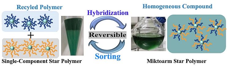 杂臂星形聚合物(Miktoarm star polymers, MSPs)又称μ-star聚合物,是一类两种及其以上的聚合物臂组成的星形拓扑结构的大分子聚合物。此类聚合物是高分子物理性质研究的理想模型之一,它具有明确的空间结构、较高的支化密度和超低的分子间相互作用强度,在溶液中的动态力学尺寸更小,具有溶液和本体黏度低等特性。重要的是,通过改变功能化聚合物链的化学组成,能够赋予MSPs一系列可定制化的物理化学特性。但是,如何可控地制备目标组分的MSPs仍然具有极大的挑战。