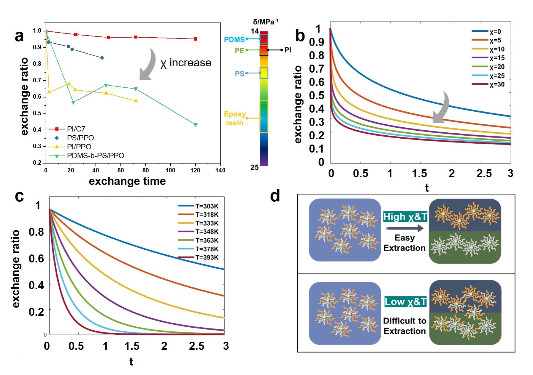 此外,在实验的基础上,研究团队进一步理论上计算了该动力学分离过程,并有效说明了配体交换过程驱动的MSPs自组装机理。通过与理论计算动力学分离过程对比,揭示了分离过程主要受到高分子Flory-Huggins相互作用参数和交换时间控制。