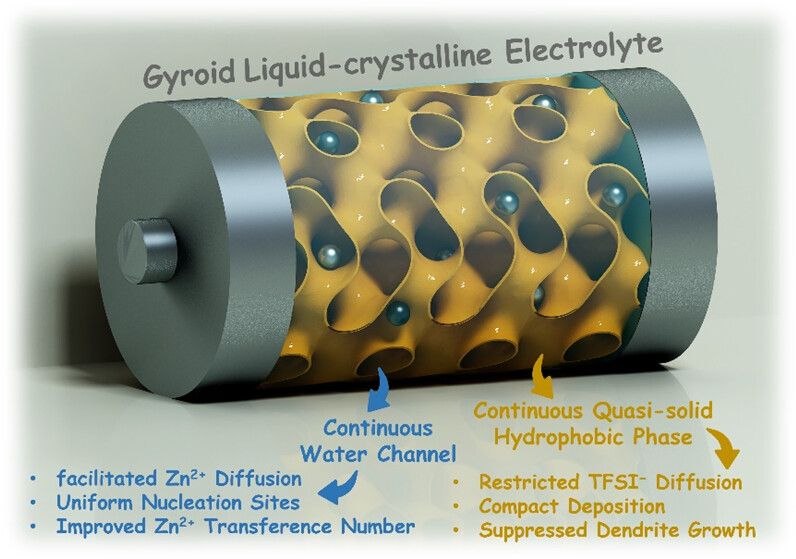液晶,作为一种介于各向异性晶体与各向同性液体之间的有序相态,具有独特地光、电、磁等性质。作为物质的“第四态”,液晶的重要应用不只局限于显示领域。得益于其内部界限分明的微相分离和宏观连续的通道结构,近年来液晶在离子传导领域受到了诸多关注。液晶电解质在锂离子电池、超级电容器、燃料电池、锌离子电池等多个领域的研究中崭露头角。特别是兼具液体和晶体材料优势的双连续立方液晶,被视作是准固态电解质的理想候选材料之一。
